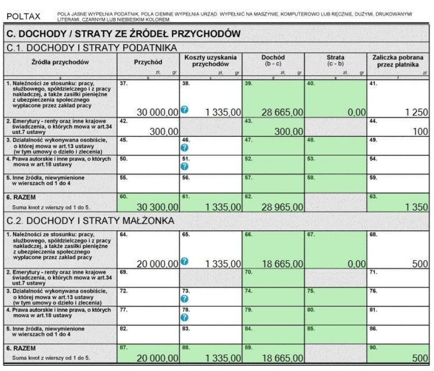 W części kalkulacyjnej program udostępnia podatnikowi wybrane pola formularza. Pozostałe pola, które nie są dostępne do edycji, program wypełnia automatycznie. Są to pola wynikające z danych wprowadzonych przez podatnika. Szczególnym przypadkiem pola wpisu jest okno pomocnicze. Ikony pomocnicze mają za zadanie usprawnić właściwe wypełnienie zeznania podatkowego. Więcej o ikonach pomocniczych można przeczytać tutaj.